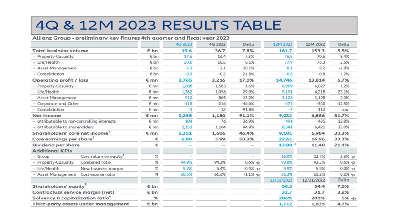 This is a translation of the German Quarterly and Full Year Earnings Release of the Allianz Group. In case of any divergences, the German original is binding.