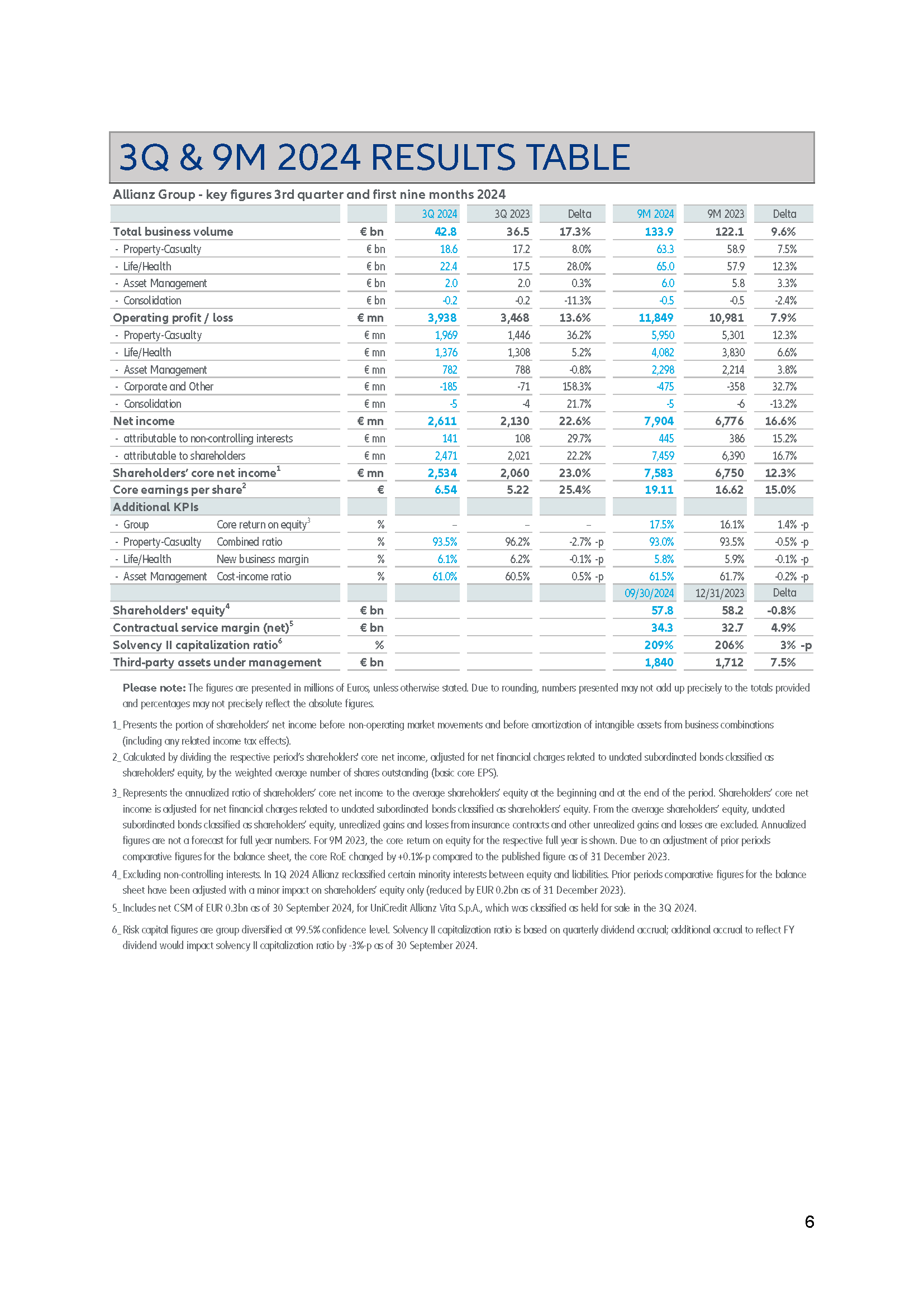 “Allianz’s strong performance delivery in the third quarter underlines the proven resilience of our business model.